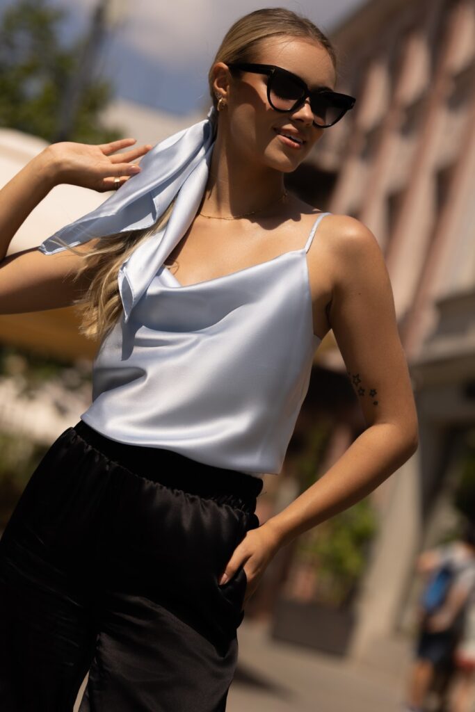 Satinschal aus natürlicher Seide. Verleiht jeder Frisur Eleganz und Schick. Sie können ihn um Ihren Hals, im Haar, am Handgelenk oder in Ihrer Handtasche tragen. In Polen mit höchster Qualität hergestellt.