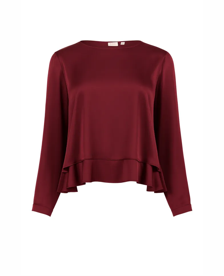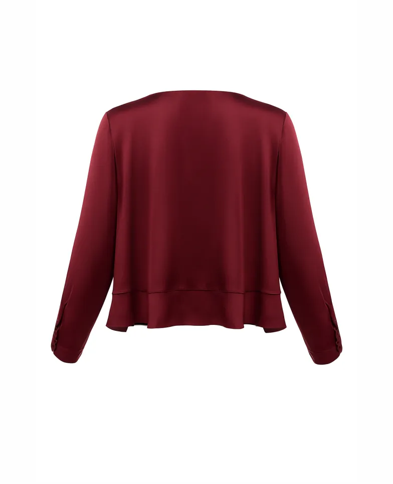 Jedwabna bluzka z podwójnymi falbankami – burgundy