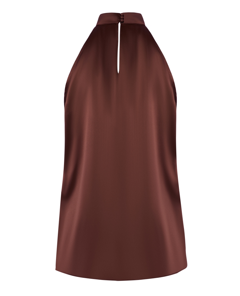 Elegancki jedwabny top odsłaniający ramiona. Zapinany z tyłu na guziki, z przodu z marszczeniem. Stworzy efektowny zestaw z jedwabna spódnicą lub spodniami, świetnie sprawdzi się również w wersji formalnej z marynarką.