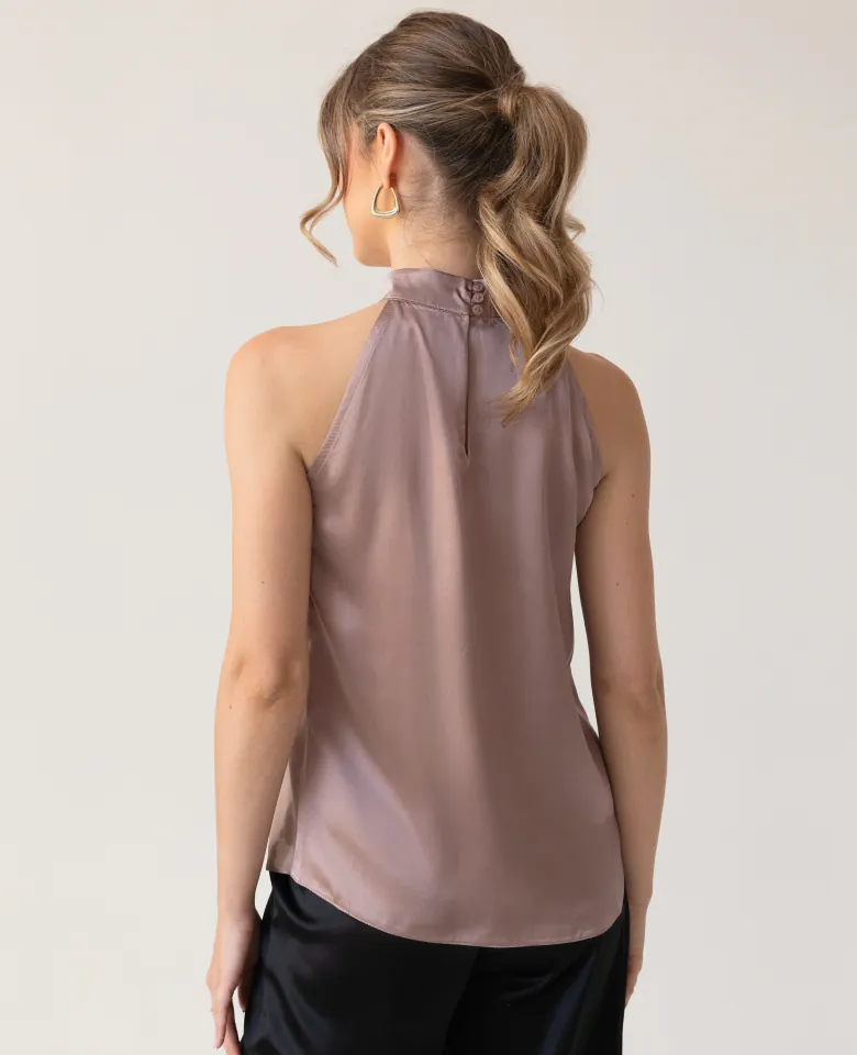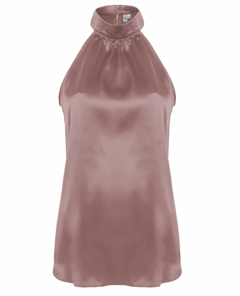 Jedwabny top z dekoltem typu halter – dusty pink