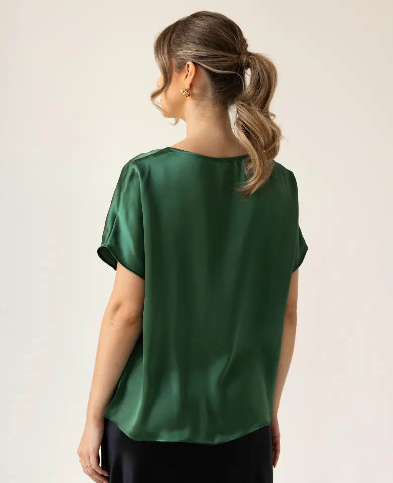 T-shirt silk satin emerald
